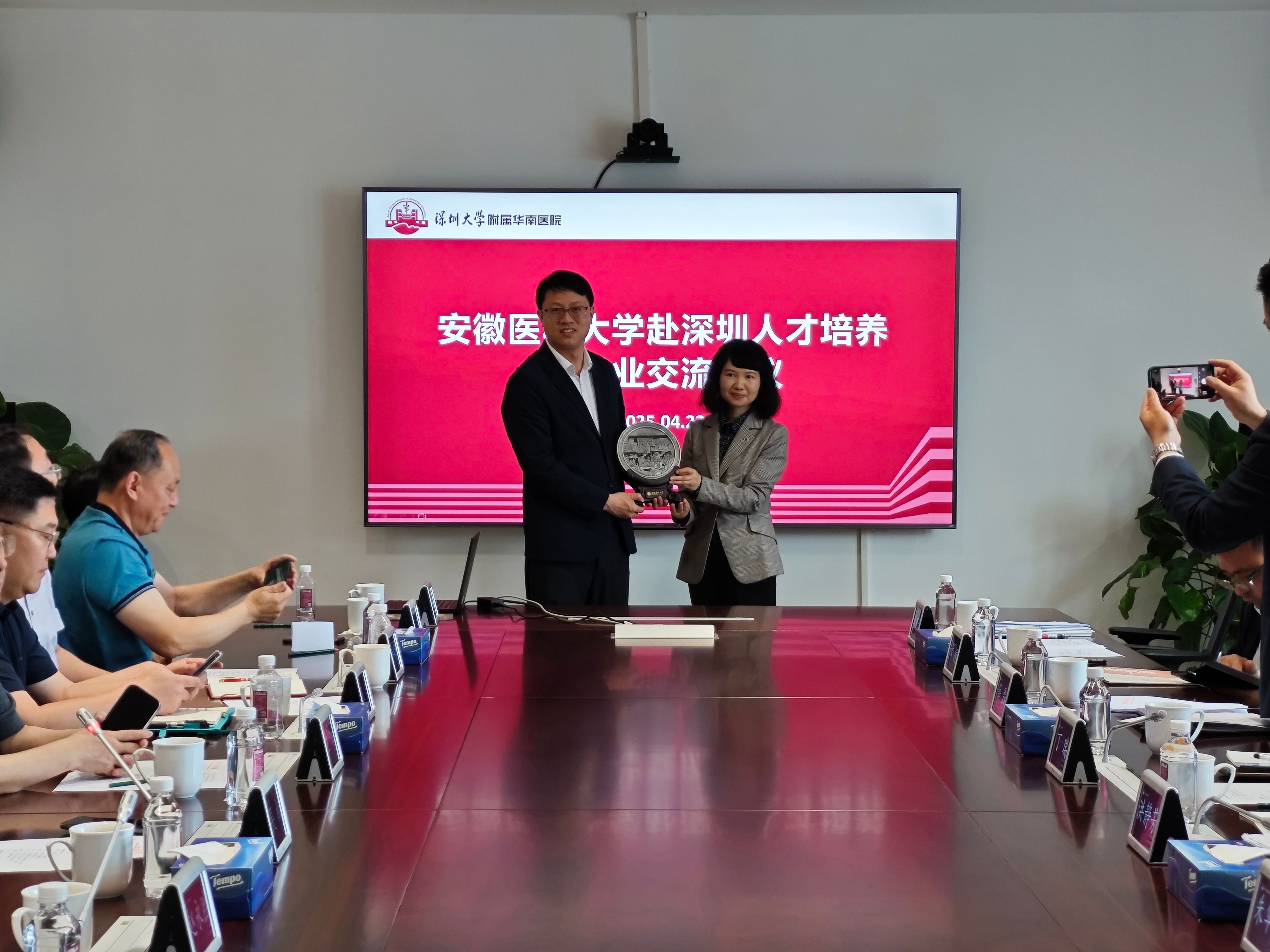 4月22日,副校长洪静芳带队前往深圳大学附属华南医院开展“访企拓岗促就业”专项行动,与华南医院院长吴松、深圳市人民医院副院长王琦、北京大学深圳医院副院长赵永胜、深圳南山区医疗集团总院长张飞、深圳校友会会长王明军等开展座谈交流。