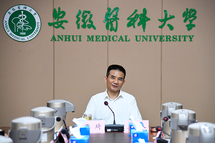 就进一步贯彻落实全国、全省教育大会精神,王琦提出三点要求,一是抢抓教育强国与教育强省建设重大机遇,争创“双一流”大学。要立足省高峰学科对标晋级和“双一流”培育项目建设,紧密结合学校实际,认真遴选首批“医+X”优势学科群项目。加强统筹谋划,以钉钉子精神推动学校“双一流”建设落地落实、见行见效,为安医大下一个百年发展奠定坚实基础。二是牢牢把握服务发展大局的重要方向,推动安徽健康产业发展。要围绕“大健康”领域,聚焦安徽省战略部署,密切结合地方特色和行业企业需求,发挥学科优势,完善科技创新体制机制,深化高能级科研平台建设,进一步推动产学研医融合发展;要通过加强与地方政府、企业和科研院所的合作,推动科技成果转化,助力安徽健康产业高质量发展。三是坚持人才优先发展战略,打造一流师资队伍。人才是学校发展的第一资源,要引育并举,聚焦“双一流”学科高质量建设与培育需求,通过完善人才引育机制,优化人才发展环境,提升人才服务水平,为学校的可持续发展提供强有力的人才支撑。