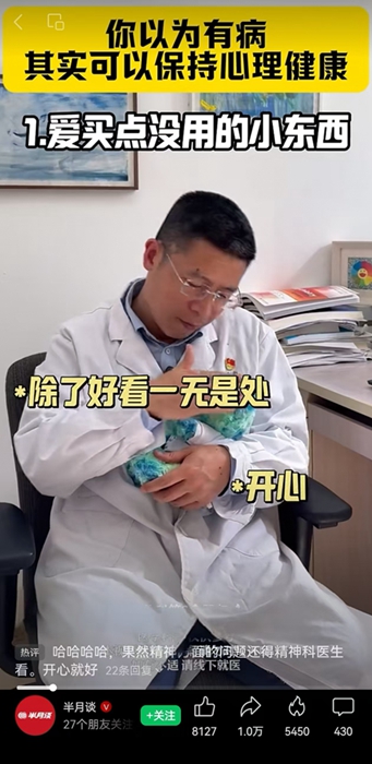 科普视频中,张凯结合实际案例,围绕“爱买点没用的小东西”“时不时吃点甜的”“爱睡懒觉”“偶尔断社交”这4个常见行为举例,引导大众正确认识这些看似“小毛病”的行为,指出它们可能是人们应对生活压力时的一种自我调节方式,并非一定是心理疾病的体现。生动表演的科普方式有效缓解了大众对自身某些行为的不必要焦虑,帮助大家以平和、理性的心态看待自己和身边人的心理状态。