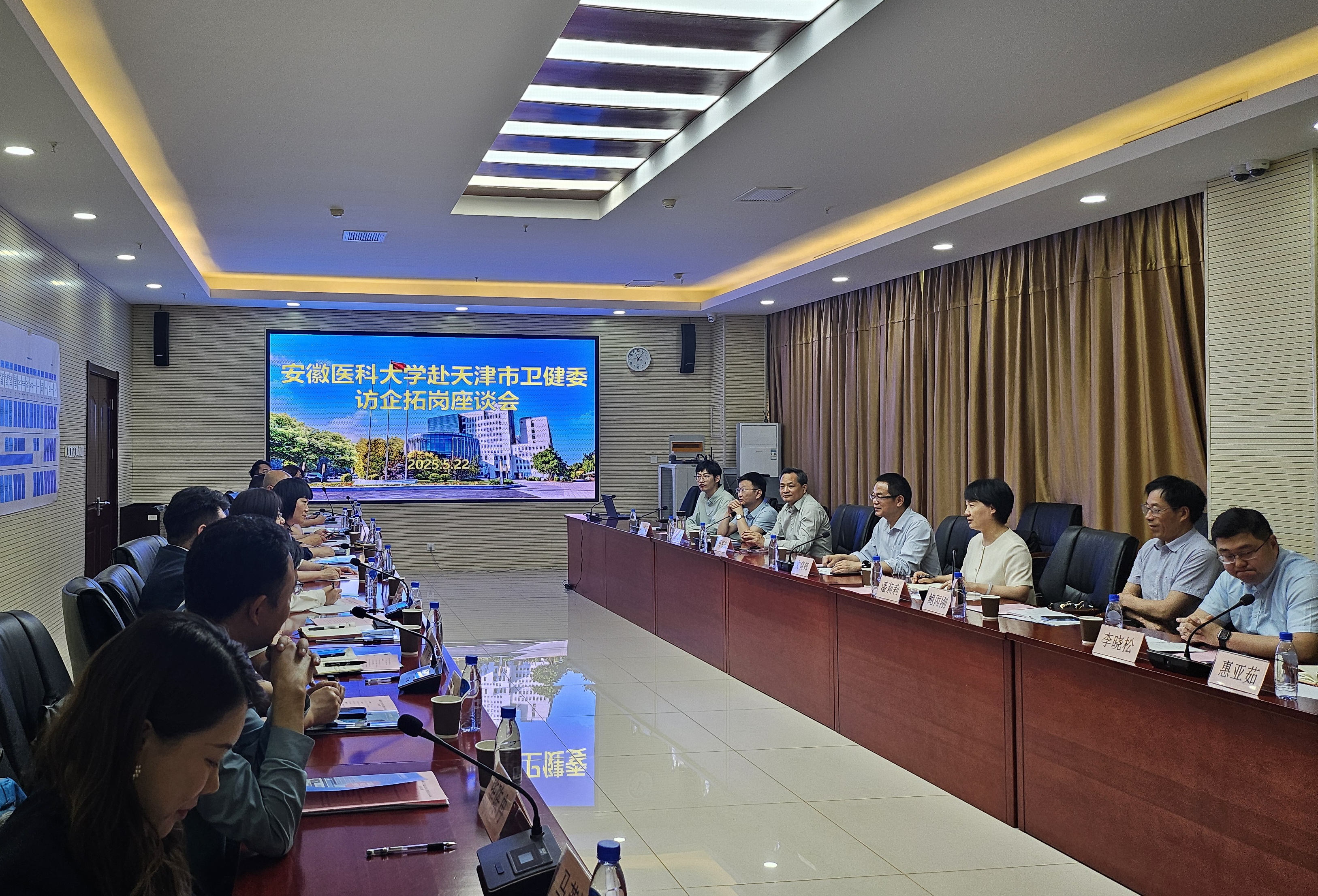 5月22日上午,校党委常委、副校长文育锋带队,前往天津市开展“访企拓岗促就业”专项活动,就人才招聘、联合培养、博士后共建等内容展开深入探讨与交流。天津市卫生健康委党委委员、副主任韩金艳参加座谈。