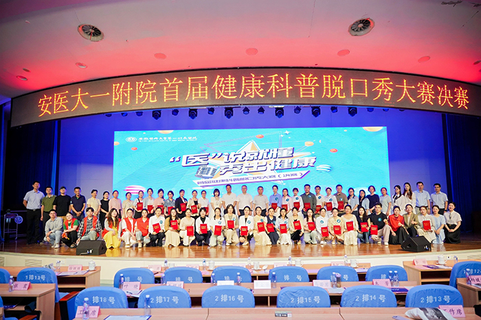 一附院党委副书记、副院长李阳新为比赛致辞。他表示,作为医院文化建设的重要载体,大赛充分彰显了百年安医“厚德、有为、创新、开放、幸福”的精神内涵。希望医院广大医务工作者要积极参与健康科普宣教,提升健康科普服务质量,让更多科学实用、通俗易懂的健康知识“飞入寻常百姓家”。