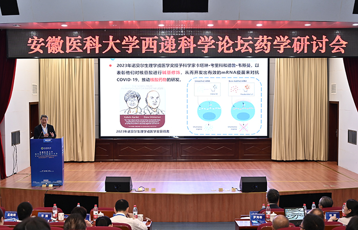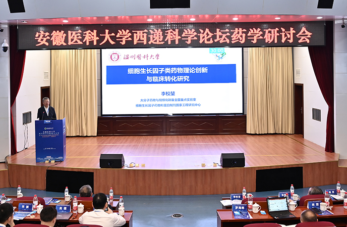 大会还举行了药学研讨会,杨宝峰、李校堃两位教授分别以《核酸药物的研究与启示》《细胞生长因子类药物理论创新与临床转化研究》为题作学术报告。来自清华大学、南京大学、复旦大学、天津医科大学、重庆医科大学、海南大学、上海交通大学、温州医科大学、北京大学、南京医科大学的 11 名药学领域专家学者先后作学术报告。