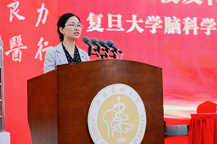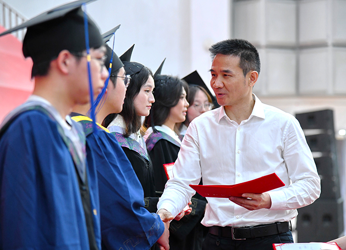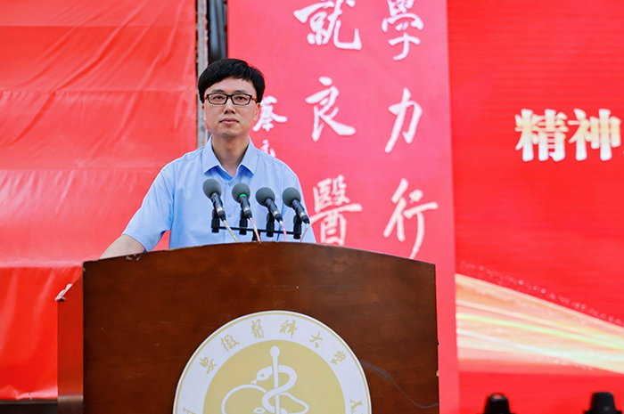 国家级青年人才称号获得者、精神卫生与心理科学学院副院长许尹教授作为教师代表发言。他回忆了与学生相处的点滴,为他们以永不言败的精神,在学习、科研、生活等方面取得的成绩感到骄傲。他希望广大毕业生都能怀揣医者仁心、永葆求知恒心、恪守从医初心,在未来的道路上努力践行“健康所系,性命相托”的神圣誓言,勇往直前,实现人生目标。