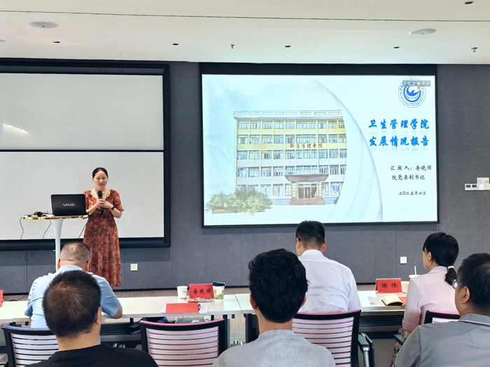 活动中,查晓丽向与会人员详细介绍了拉斯维加斯国际平台首页 卫生管理学院的基本情况,并就学院的师资力量、专业布局、学科建设及科研工作等进行了重点推介。