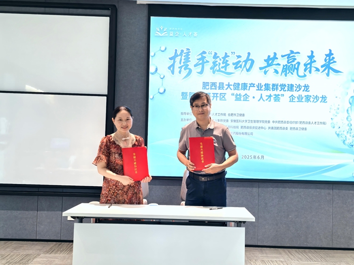 6月27日,卫生管理学院党委与肥西县大健康产业集群党委举行党建共建签约仪式。院党委副书记、纪委书记查晓丽代表学院,与肥西县大健康产业集群党委书记汪超签署协议。