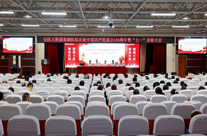 6月26日下午,附属巢湖医院召开庆祝中国共产党成立104周年暨“七一”表彰大会,院党委书记凌春笋讲话,院党委副书记葛丽丹主持会议,在院领导班子成员参加会议。