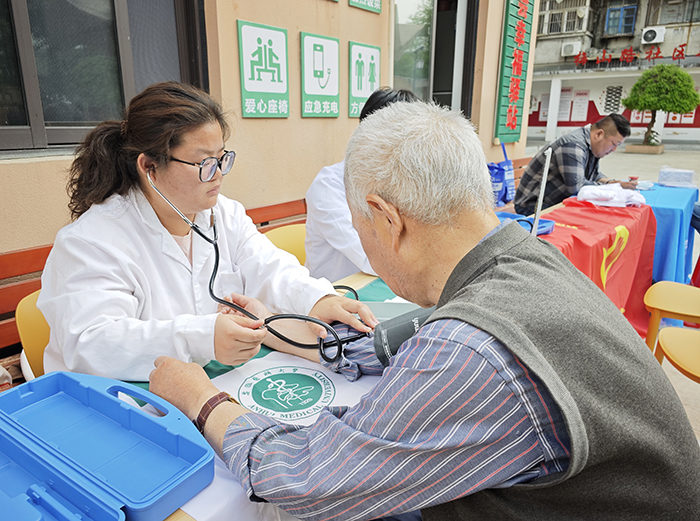 针对基层群众的健康需求,社会实践内容包含听诊、量血压、测血糖等不同类别的体检,以及肿瘤预防和职业病防治知识等为主题的健康宣教活动。同时,通过发放居民就医健康素养调查问卷,全方位了解群众在就医过程中遇到的困难和问题。