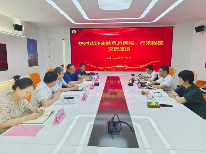 7月9日上午,南陵县总医院党委书记方春红、党委副书记陶正萍一行来我校,就提升县域内公立医院的管理水平、业务能力以及非学历教育培训相关情况开展交流座谈。会议由教务处(实验教学中心)副处长黄升海主持,卫生管理学院党委书记赵云峰、副院长陈任,生物医学工程学院副院长杨飞参加会议。