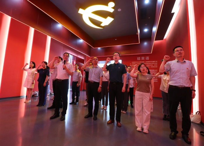 参观结束后,全体党员面向鲜红的党旗庄严宣誓,重温入党誓词。铿锵有力的誓言回荡在展厅,表达了全体党员干部不忘初心、永葆本色的坚定信念。大家还集中观看了警示教育专题片,片中落马官员深刻忏悔和惨痛教训,进一步强化了“不敢腐、不能腐、不想腐”的思想自觉。