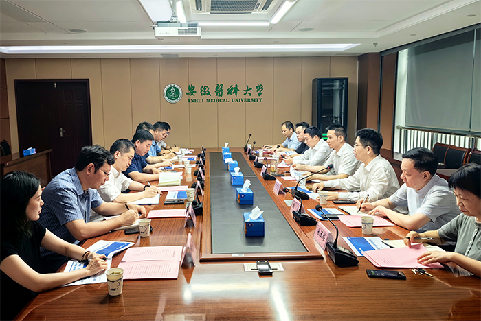 7月11日上午,安徽中技国医医疗科技股份有限公司(以下简称“国医科技”)来校交流,校党委书记王琦会见公司董事长丁贞虎一行,校党委常委、副校长邱志海主持座谈会,第一附属医院党委副书记、院长孙倍成参加座谈。