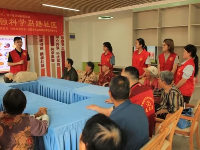实践团深入科学岛路社区,组织开展科普课堂,讲解常见病防治、心理健康、生活安全常识、急救技巧等内容,并发挥医学生专业所长开展义诊服务,连续七天为老人测量血压血糖并记录数据,提供科学指导。同时联动京东方医院等机构,将“健康门诊”搬进社区,提供中医推拿、口腔检查、心电图评估与中风筛查,真正做到了“把专业服务送到家门口”。