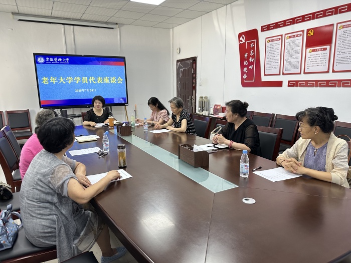 7月24日上午,老年大学召开学员代表座谈会,离退休人员工作处副处长邢芳主持会议。