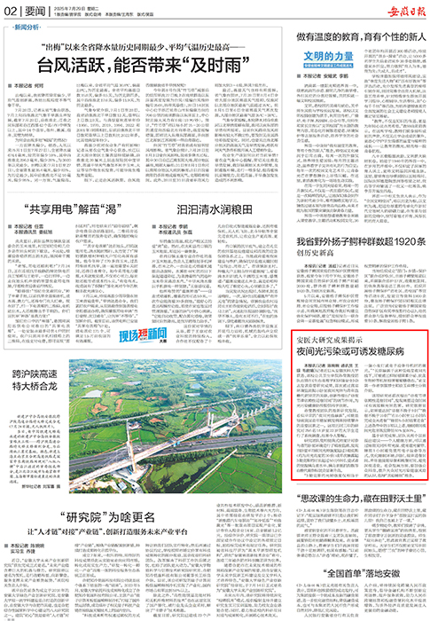 安徽日报、人民日报健康客户端、合新闻:安医大研究成果揭示 夜间光污染或可诱发糖尿病