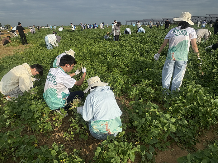 脚踩田间泥土,实干中汲取振兴力量。清晨的薄雾里,队员们走进田间地头,亲手体验“分田到户”的农耕劳作。弯腰除草的汗水让大家读懂了“颗粒归仓”的分量,也更理解了小岗精神中“脚踏实地”的内核。午后的匠心葡萄园里,现代化温室大棚、滴灌系统与生态种植技术,展现着现代农业的蓬勃生机;盼盼食品自动化生产线上,从原料到成品的高效流转,印证着乡村产业化升级的活力。队员们不仅帮忙采摘葡萄、整理包装,更拿起手机开启直播,用“小岗故事+产品溯源”的方式为当地特产带货,让青春洋溢在振兴的实干中。